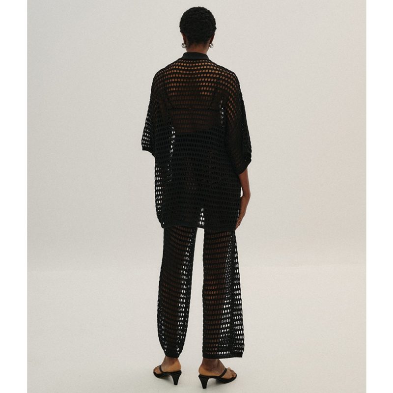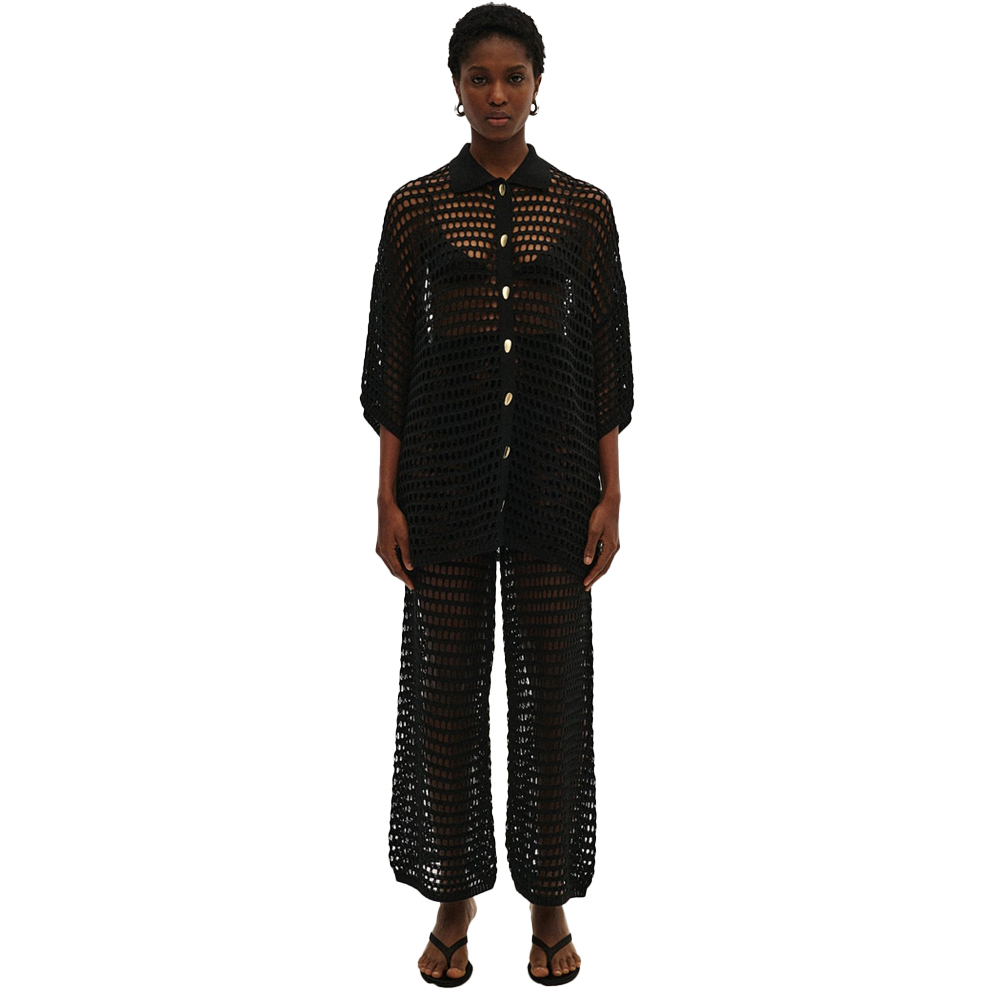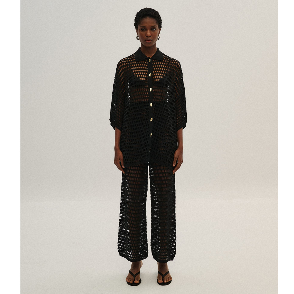 Πλεκτή μπλούζα/Πουκάμισο κοντομάνικο c-throu σε μαύρο χρώμα από την COMBOS KNITWEAR.