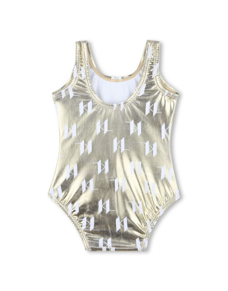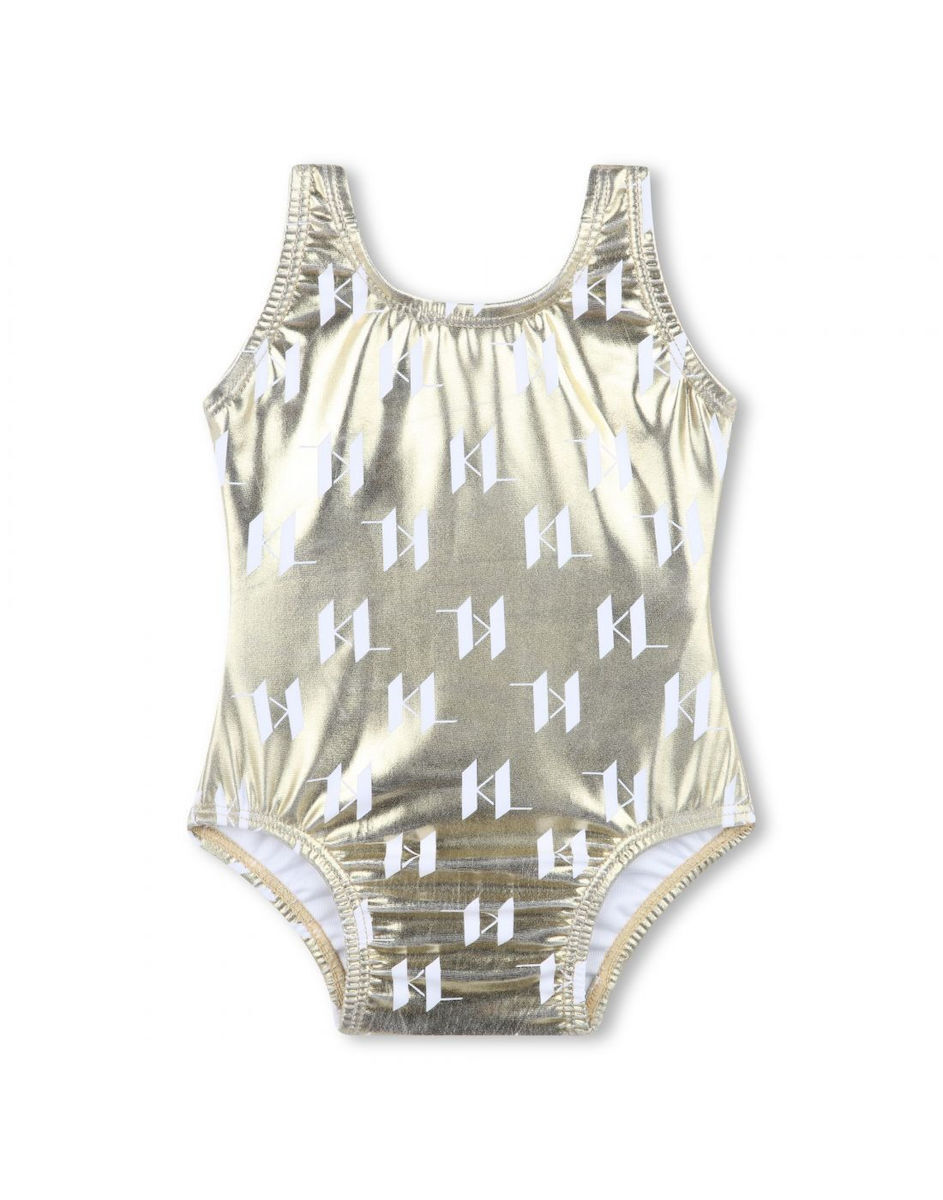 Παιδικό ολόσωμο μαγιό για κορίτσια, της εταιρίας Karl Lagerfeld, σε χρυσό χρώμα, με λευκό λογότυπο.