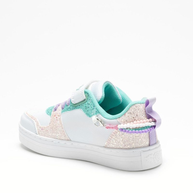 Lelli Kelly αθλητικά GIOIELLO με εντυπωσιακές και λαμπερές λεπτομέρειες. Είναι διακοσμημένα με γκλίτερ σε αποχρώσεις του ροζ, λιλά και του βεραμάν στη πλαινή μεριά και έχουν ένα εντυπωσιακό βραχιολάκι στη πίσω μέρια που αφαιρείται και γίνεται βραχιόλι για το χέρι!!! Είναι πολύ άνετα και εντυπωσιακά. Εξωτερικά είναι κατασκευασμένα από eco leather και εσωτερικά έχουν υφασμάτινη επένδυση για άνετο και μαλακό πάτημα. Η σόλα τους είναι από καουτσούκ, αντιολισθητική, πολύ εύκαμπτη και πολύ ελαφριά. Μπορούν να φορεθούν πολύ γρήγορα και εύκολα καθώς διαθέτουν λιλά ελαστικά κορδόνια και αυτοκόλλητο velcro. Πολύ εντυπωσιακά, στιλάτα και ξεκούραστα για ατελείωτες βόλτες!
